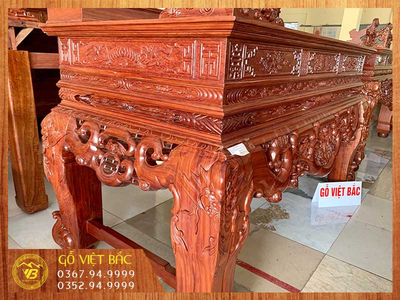 Những chiếc sập thờ gỗ của Gỗ Việt Bắc được chạm khắc tinh xảo, khéo léo với rất nhiều hoa văn: từ rồng chầu phượng múa cho vua chúa, quan lại; rồi tùng, cúc, trúc, mai, sông núi, thủy cung cho đến các hoạt cảnh đời thường cũng được đưa vào một cách tinh tế nhất. Vì thế, khi gia đình gia chủ còn đang băn khoan, không biết lựa chọn sản phẩm gì để trong gian nhà của mình ,vừa thể hiện sự quý phái vừa mang lại giá trị cao về lợi nhuận cũng như mang về sức khỏe và sự tài lộc.